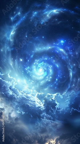 blue spiral galaxy with stars and clouds, background, fantasy illustration