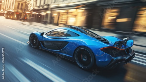 sport, car, blue, speed, fast, motion, blur, street, city, urban, asphalt, road, driving, automotive, vehicle, luxury, powerful, performance, wheel, tire, engine, design, style, automobile, transportation, sleek, modern, futuristic, aerodynamic, rear, back, backview, light, side, rear lamp, windscreen, window, roof, chrome, metallic, sun, day, horizon, background, colours, black