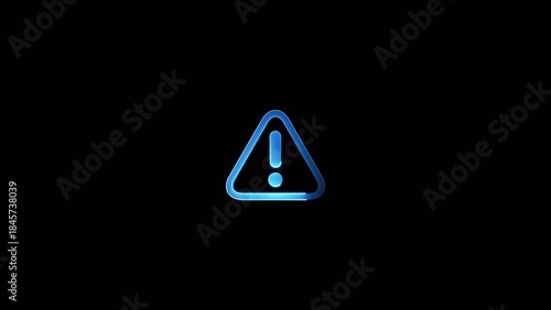 Blue triangular warning sign with exclamation mark on dark Generate title without using the word "Title:" before it. background triangle