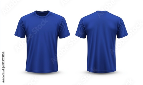 Blue t-shirt template, front and back, isolated on a white background. Vector illustration