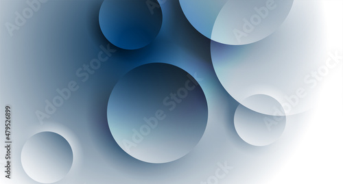 Blue white geometric tech background with glossy circles. Vector design
