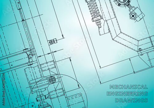Blueprint. Vector engineering drawings. Mechanical instrument making. Technical. Light blue