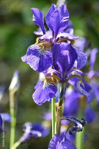 blue, flowerbed, garden, iris, many-coloured, nature, natural, discount, flower garden, flower, iris, close-up view, macro, bokeh, flora, floral, botany, bud
