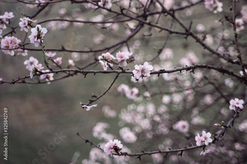 blurred background blossoming of pink white cherry flowers on tree spring season