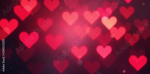 Blurred bokeh hearts in various shades of red and pink, love, gentle, elegant