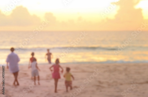 Blurred kid on beach abstract background.