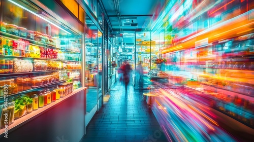 aisle, blur, blurred, bokeh, bright, colours, colourful, commercial, consumerism, display, good, grocery, interior, light, light, long, motion, movement, night, product, product, retail, shelf, shop, shopping, store, street, supermarket, urban, vibrant