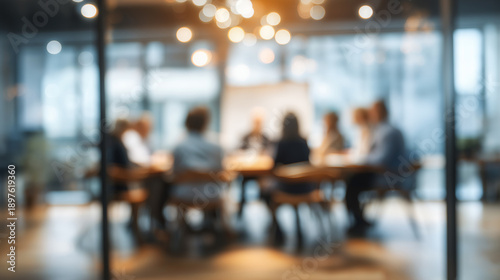 Blurred Office Meeting Background with Business Team Discussion, Modern Corporate Workplace, Professional Collaboration and Strategy Concept