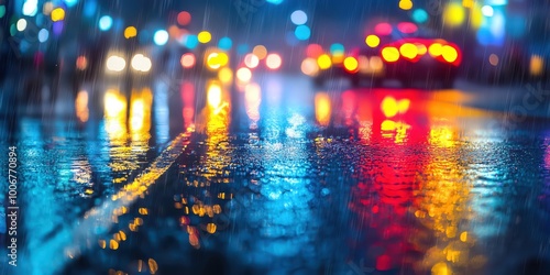 blurry, city, light, reflect, wet, asphalt, rain, shower, night, street, background, bokeh, urban, puddle, contrast, design, realism, evening, surface, moody, landscape, angle, vanish, nature, downtown, ambience, neon, modern, skyline, yellow, pattern, charme, vibrant, water, art, shimmer, scene, depth, abstract, texture