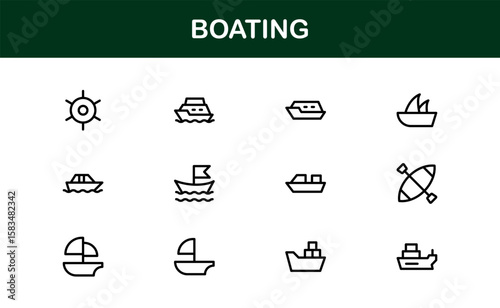 Boating Modern Professional Line Icon Collection Featuring Clean Minimal Design