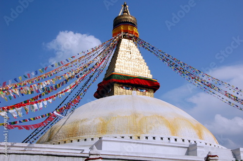 Bodnath stupa with Buddha eyes and prayer flags in Kathmandu, Nepal