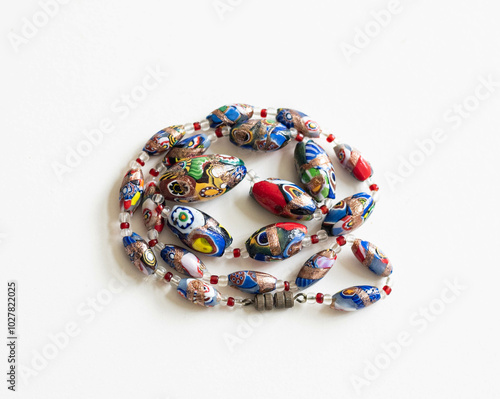 Boho Glass Bead Necklace – Handmade Artisan Jewelry Flatlay on White Background