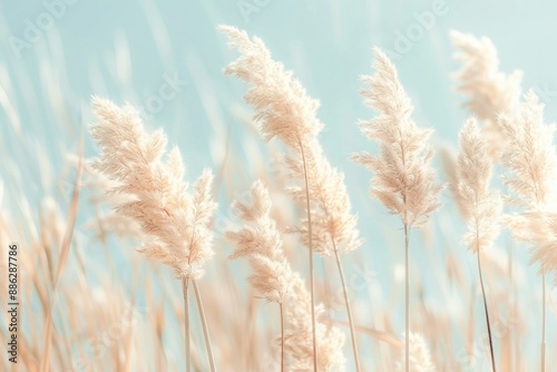 Boho Style: Pampas Grass in Light Pastel Colors on a Summer Field