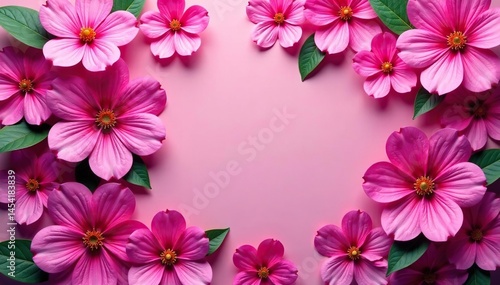 Bold fuchsia blossoms in repeating floral design, bright, plant