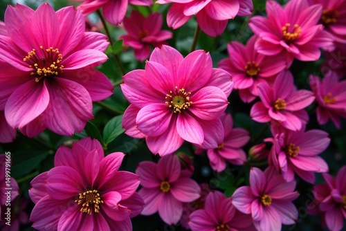 Bold fuchsia floral motif, densely packed blooms , vibrant, blossom
