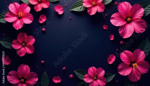 Bold fuchsia hibiscus pattern on dark backdrop, seamless, design