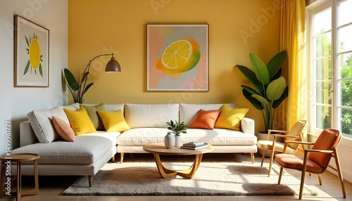 Bold maximalist living room with layered textures, bright colors, and eclectic art pieces .