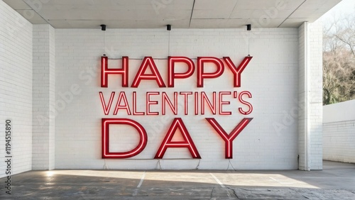 Bold Sans-Serif 'Happy Valentine's Day' in Bright Red Text on a Plain White Backdrop
