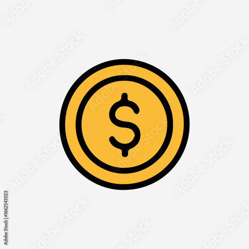Bold Yellow Coin Icon with Central Dollar Sign.