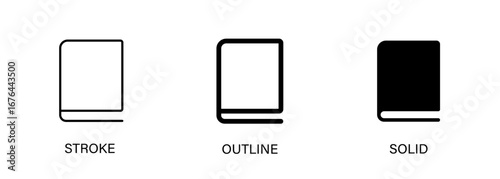 Book icons for library, education, learning, knowledge and ui design. Vector stroke, outline and solid icons.