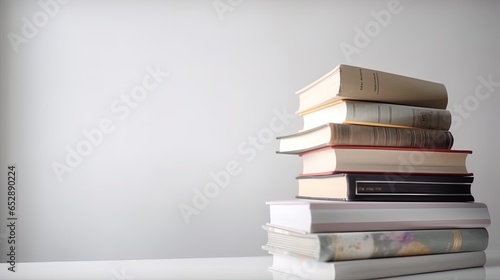 Books arrangement with copy space stack of books on table knowledge education background WORLD BOOK AND COPYRIGHT DAY