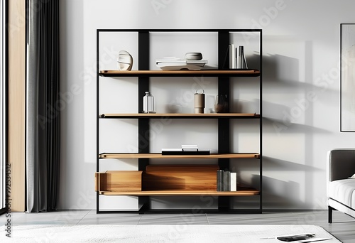 bookshelf, wood, metal, modern, vintage, rustic, scandinavian, contemporary, cosy, farmhouse, minimalist, sleek, elegant, roomy, airy, bright, luxurious, floral pattern, book, inviting