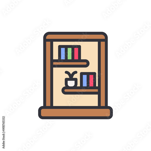 icon, coloured, outline, simple, minimalist, solid, thin, line, stroke, creative, colourful, style, modern, detailed, transparent, isolated, illustration, symbol, web, bookshelf, library, book, literature, vector, bookshop, education, study, university, dictionary, cognition, learning, interior, shelf, information, bookcase, furniture, object, learn, stack, studying, science, organised, row, document