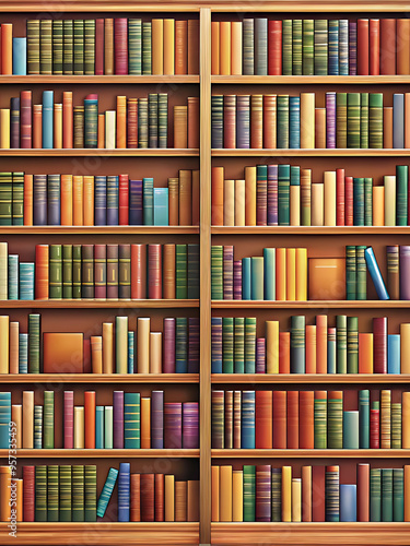 Bookshelves with row of books vector illustration