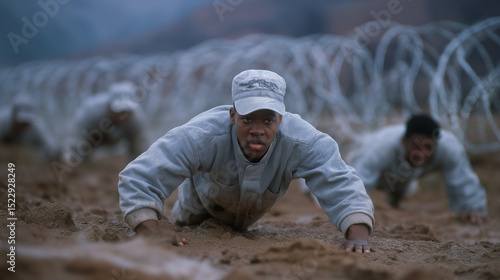 bootcamp, exercise, physical training, barbed wire, fenced, discipline, teamwork, perspiring, commitment, strength, fitness, challenge, leadership, improvement, camaraderie, education, motivation, physical fitness, wellness, saluting, hard work, determination, agility, activity, coaching, development
