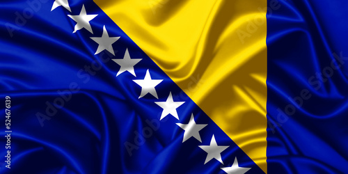 Bosnia and Herzegovina waving flag close up satin texture background