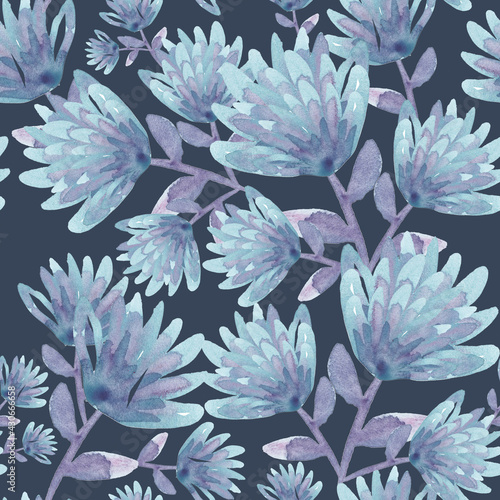 botanical watercolor illustration of clover flowers for wallpaper or fabric,blue color,seamless pattern
