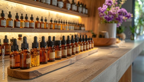 bottle, wooden, counter, flower, oil, firefly, essential, table, display, purple, background, scene, indoor, still, life, serene, calm, peaceful, natural, product, arrangement, shelf, light, illuminated, label, brown, glasses, liquid, fragrance, aroma, scent, wellness, health, beauty, spa, relaxation, calmness, decor, interior, design, contemporary, modern, minimalist, simplicity, elegance, sophistication, luxury, high-end, premium