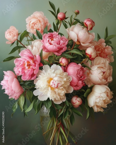 peony, bouquet, many-coloured, vase, flower, flower petals, arrangement, blossom, flora, decoration, elegant, bloom, pink, purple, white, spring, nature, beauty, fresh, vibrant, lush, floral, design, romance, soft, light, pastel, delicate, botanical, gardening, fragrance, gift, celebration, closeup, textured, artistic, bright, colourful, bunch, green, leaf, stem, tender, love, peaceful, joyful, still life, style, transparent