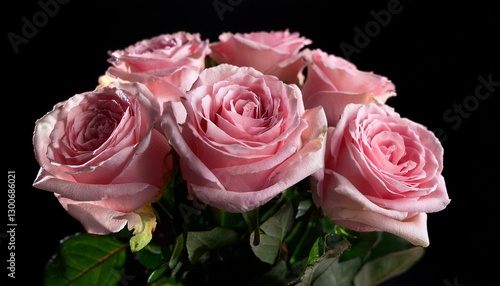 bouquet of pink roses on black background