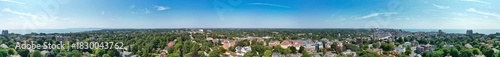 Bournemouth Beach and Ocean City of England. Aerial Footage Was Captured During Hot Sunny Day of 12th, August 2025 With Drone Camera. Bournemouth City is Most Attractive Tourist Attraction of England.