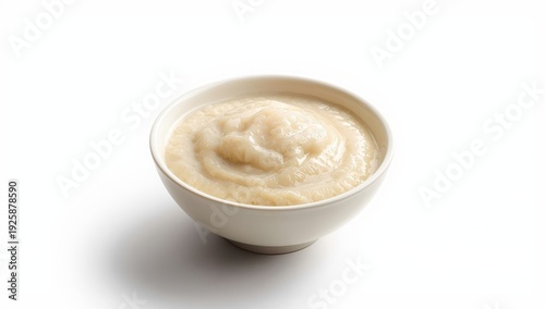 Bowl of rice milk pudding without gluten on white background