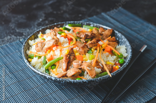 asian, background, black, bowl, cereal, chicken, china, chinese, colours, cook, cooked, cookery, culinary, dark, delicious, dinner, dish, east, eating, egg, fast, food, fresh, fried, healthy, homemade, ingredient, lunch, meal, meat, mix, natural, nobody, nourishment, object, organic, oriental, plate, prepared, receipe, rice, spicey, table, tasty, thai, traditional, vegetable, wok