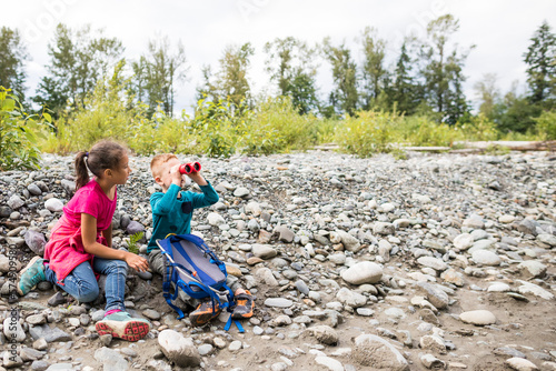 adventure, barren, binocular, boy, british columbia, canada, childhood, curiosity, day, explore, full-length, fun, girl, hiking, horizontal, children, nature, outdoors, playing, sitting, toddler, tour tourism, two people, youth