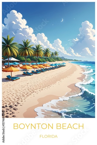 Boynton beach Florida United states Travel Poster Illustration Print Decor Gift Canvas Wall Art Gift