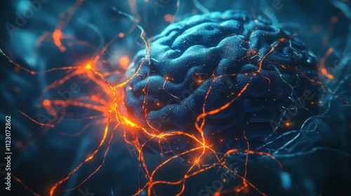 brain, nerve cell, neural, network, neurology, science, biology, anatomy, health care, medicine, technology, research, mobile phone, nervous, system, mind, thinking, learning, memory, consciousness, intelligence, dendrite, electric, impulse, signal, communication, digital, art, three-dimensional, rendering, abstract, macro, close, up, detail, texture, blue, orange, glowing, dark, scientific, medicals