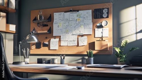 realistic, landscape, notice board, pin, scene, realism, pinboard, functional, organised, artistic, interior, sharpened, innovation