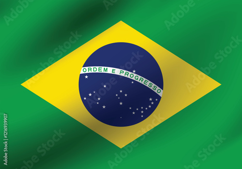 Brazil flag official colors and proportion digital vector illustration. Pleated flag.