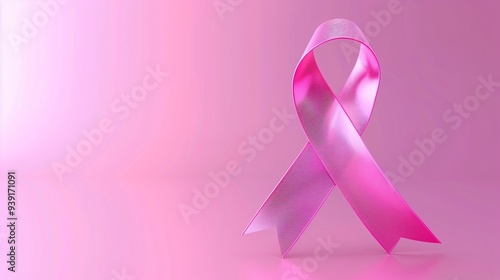 Breast cancer awareness ribbon on pink background with copy space for text.