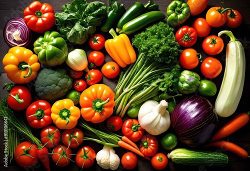 breathtaking aerial perspective showcasing vibrant collection fresh seasonal vegetables abundant display, view, colorful, produce, garden, harvest, organic