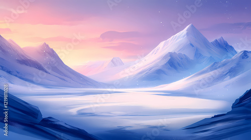 breathtaking, arctic, tundra, landscape, dawn, swirling, snow, pattern, illustration