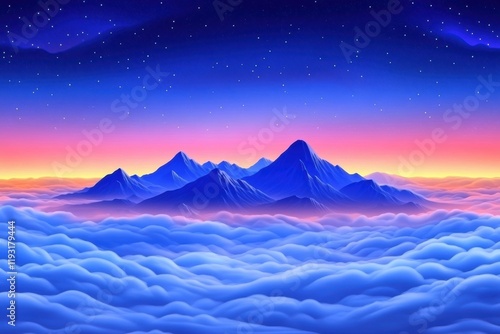 mountain, landscape, twilight, colours, cloud, sky, serene, atmosphere, nature, scenery, peak, horizon, sunset, view, photo, landform, outdoors, beauty, travel, adventure, calmness, environment, night, dusk, panorama, blue, violet, silhouette, exploration, serenity, wilderness, scenic, panoramic, majestic, calm, impression, artistic, abstract, visual, peaceful