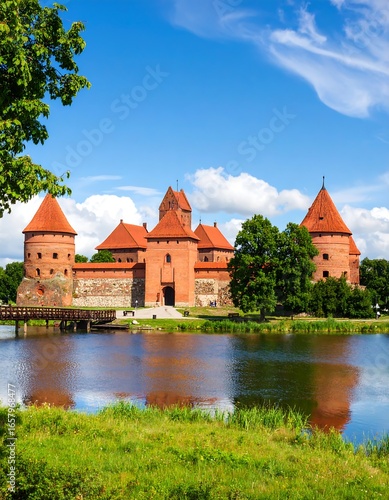 Brick Castle Reflection Sunny Day Lithuania