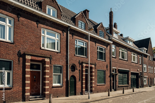 architecture, urban, house, brick, window, design, facades, residential, street, sunlight, exterior, building, neighbourhood, detail, structure, modern, classic, style, home, community, environment, landscape, holland, city, warm, inviting, aesthetic, heritage, craftsmanship, symmetry, pattern, texture, peaceful, vibrant, scene, daylight, urbanism, lifestyle, calmness, attracted, charme, visual, perspective, residential area, historical