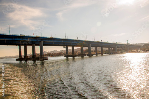 bridge over the river at sunset in the goldenhorn sea, halic in istanbul, constantinople