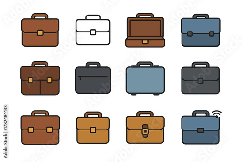 briefcase, suitcase, bag, baggage, brown, white, blue, black, handle, strap, buckle, line, icon